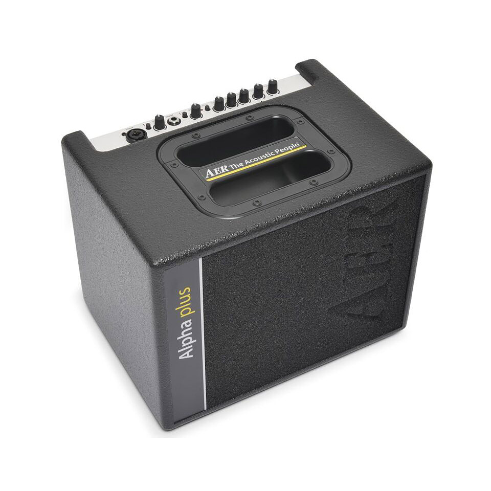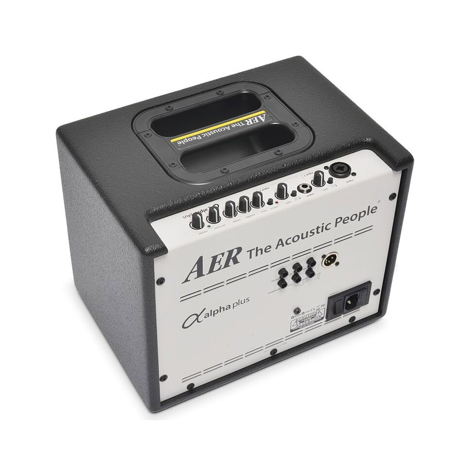 The AER Alpha Plus is a one channel acoustic guitar combo amp with two independant input stages (line and microphone/line), a dynamically controlled 50 Watts power-amplifier, 8-inch twin-cone speaker-system, 3-band equalization and reverb. 48V phantom power on the XLR-input allows the operation of high-quality condenser-microphones.
