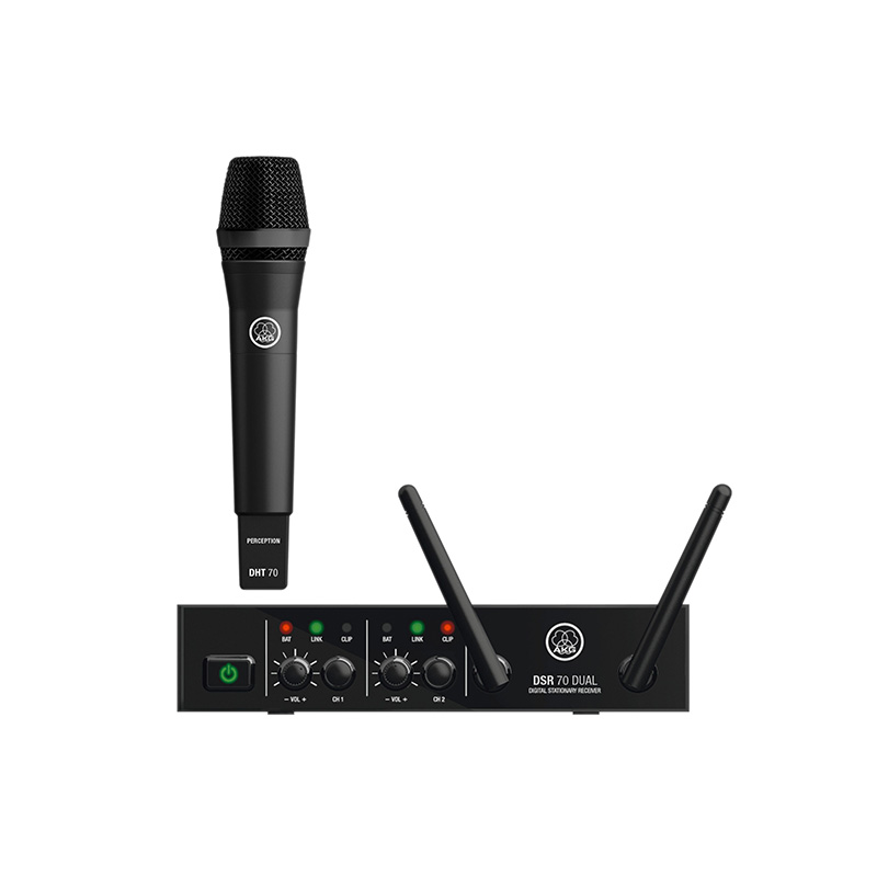 The DMS70 Dual Vocal Set is a professional digital 2.4GHz wireless system for worldwide license-free operation. It provides uncompressed studio quality and