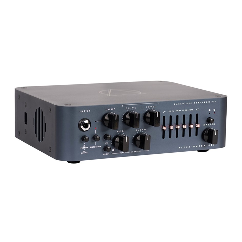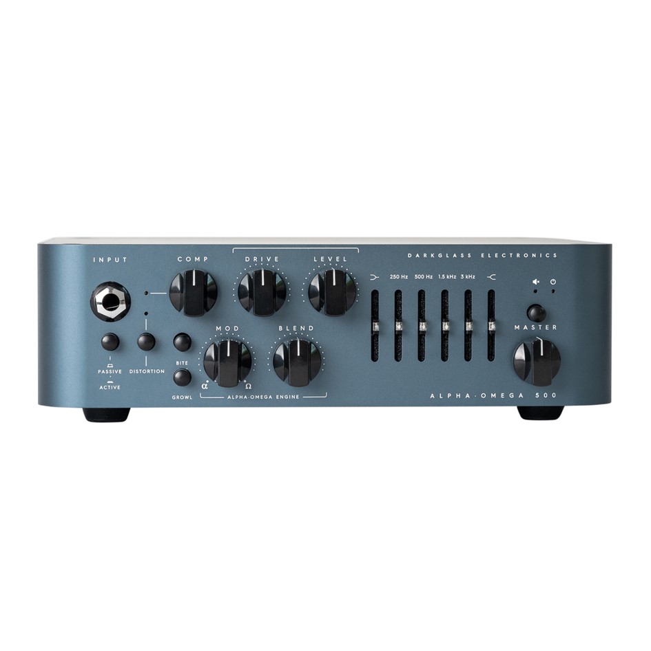 The Alpha·Omega 500 is a 500W amplifier equipped with an all-analog preamplifier, two distinct distortion circuits (Alpha and Omega), a custom-designed Darkglass high-efficiency class D Module, an ultra-quiet graphic equalizer, and a digital impulse-response cabinet emulator for DI outputs or headphones.
