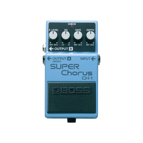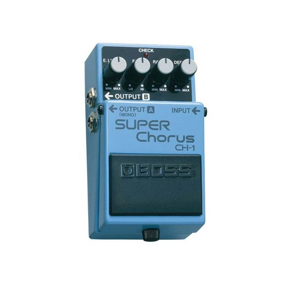 The CH-1 Super Chorus pedal delivers a clean classic chorus sound with crystal-clear highs and a unique stereo effect, variable between left and right speakers.