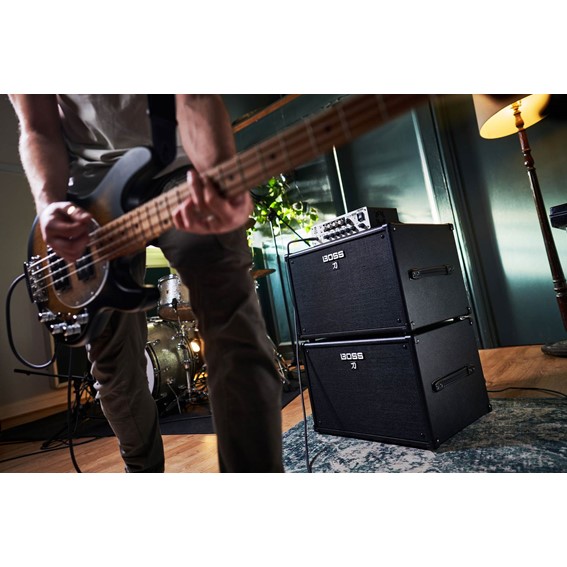 The Katana-500 Bass Head is equipped with dual speaker outputs, letting you stack two Katana Cabinet 112 Bass units for a bigger sound on larger stages. Locking-style jacks provide secure connections and support for high-current operation. The Katana Cabinet 112 Bass also features a link jack for connecting a second cab when using an amp with just one speaker output.