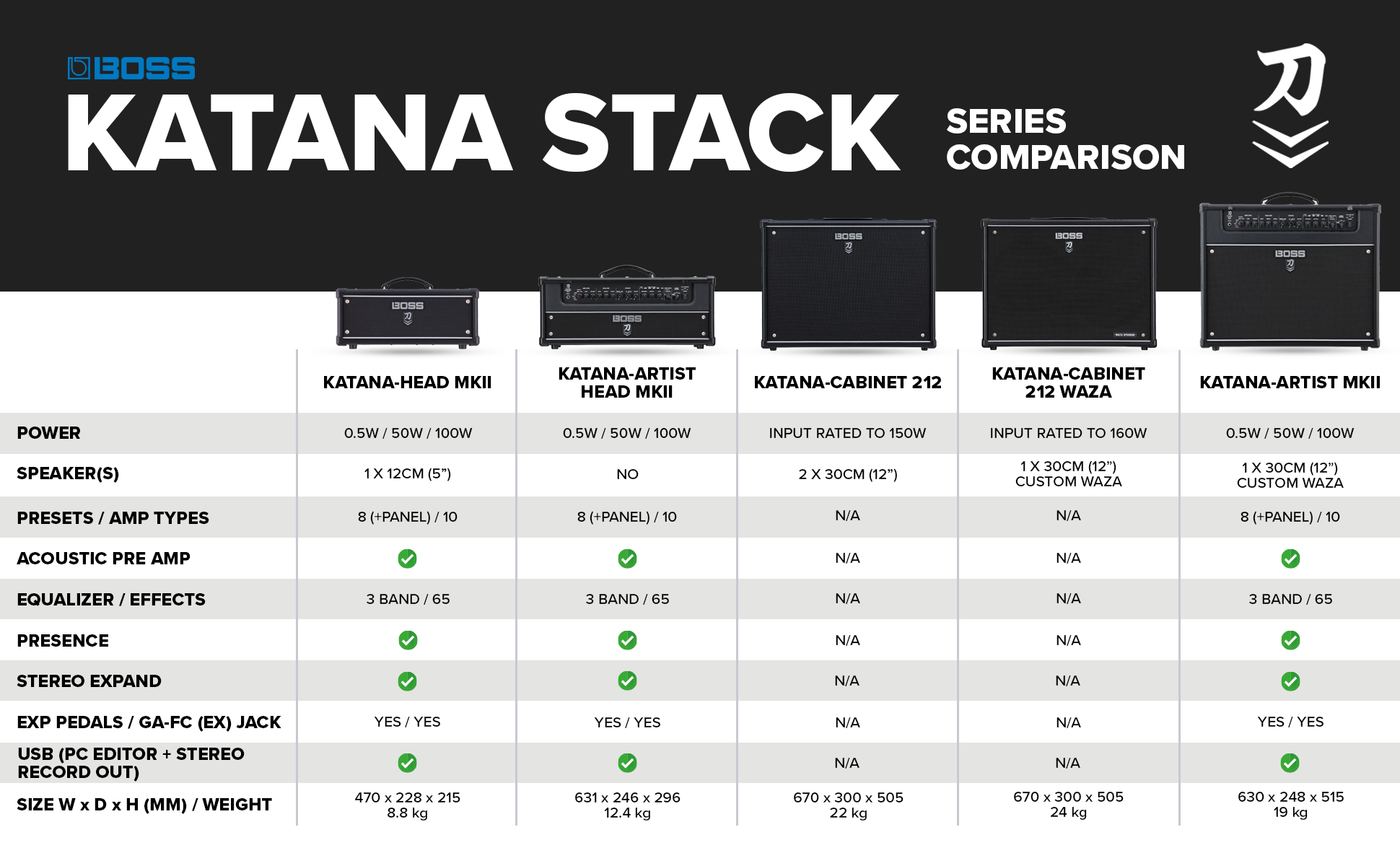 • Optional speaker cabinet tuned for the Katana-Artist MkII Head: Katana Cabinet 212 Waza