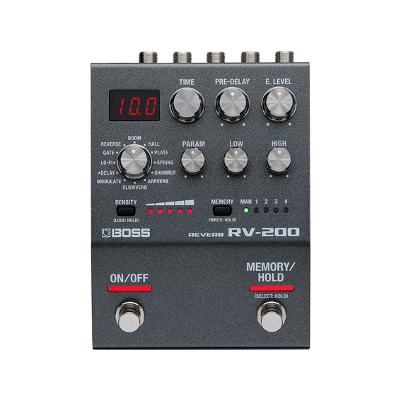 The RV-200 delivers inspiring reverbs and premium sound in the streamlined BOSS 200 series design. Twelve versatile reverb types—including the newly developed Arpverb—provide everything from subtle spatial color to complex, dreamy textures for ambient explorations. Quickly dial in sounds with the fast-access interface. Save favorites in 127 memories. And take performances to the next level with flexible onboard footswitches, deep external control support, and head-turning creative tools like Warp, Twist, and more.