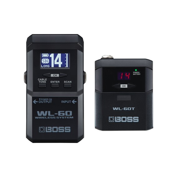 Offering great tone, ultra-low latency, and effortless set up, BOSS’s revolutionary WL series has made it easier than ever for musicians to go wireless. The WL-60 system is a great fit for serious stage performers, bridging plug-and-play simplicity with fast user-guided control. The compact receiver is tailor-made for pedalboards, and features a large visual display and direct-access buttons to quickly scan and select the best wireless channel. Rounding out the system is a rugged bodypack transmitter, which is compatible with nearly any instrument and runs for up to 25 hours on regular alkaline batteries.