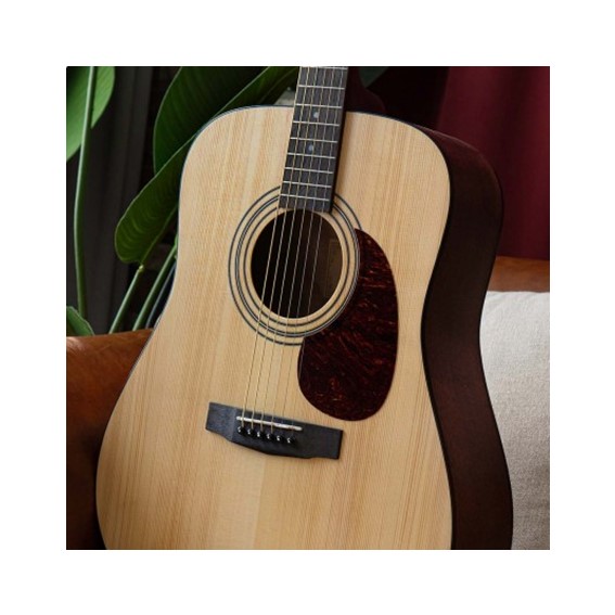 As Cort’s homage to the great vintage acoustic guitars, the Earth Series represents the look, sound, feel and playability of those fine instruments with uncompromising quality and excellent value. The Earth60 features the golden standard of acoustic guitars: Solid spruce top. Together with mahogany back and sides, this wood combination delivers the time-tested, signature bright yet full sounding tone that players all around love and desire, while the full-sized dreadnought body offers full body output and plenty of projection.