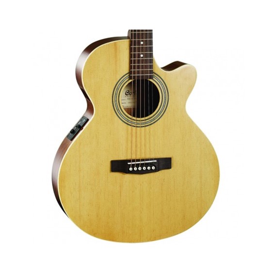 The SFX-ME by Cort is the perfect guitar for stage and studio. This gig-ready acoustic, making it ready to plug in and play. The Spruce top and Mahogany back and sides give it a sound that is big, rich and boomy. The SFX-ME is comfortable to play thanks to its all-access cutaway body design and the V-contour neck profile. This guitar is ready to gig when you are.