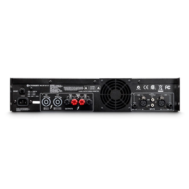 Crown’s XLS Series amplifiers define the standard for portable PA systems with unmatched performance, technology and affordability. Its advantageous flexibility includes multiple inputs so you can plug in anything and play anywhere, along with several system setup configurations. The integrated crossovers and switch-mode power supply produce superior sound, and Peakx™ limiters protect your speakers. Weighing less than 12 pounds, compared to 40 pounds for its competitors, it’s much easier to set up and move from show to show. Simply put, the XLS is most reliable, versatile, efficient amp available today.