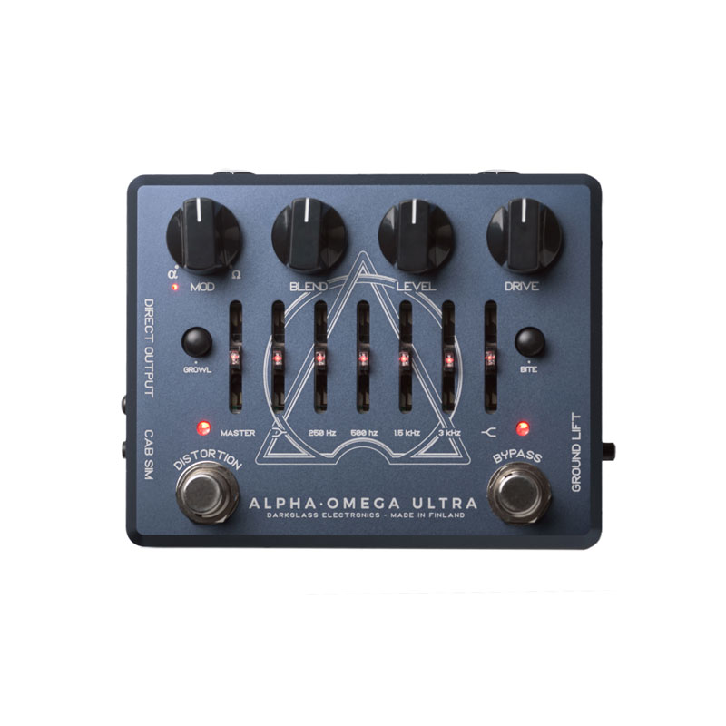Selects or mixes between the two distinct distortion circuits: Alpha is punchy, tight with a lot of definition, whereas Omega is simply brutal and raw. On the Darkglass Suite you can assign footswitch control of the Mod to toggle between Alpha and Omega.