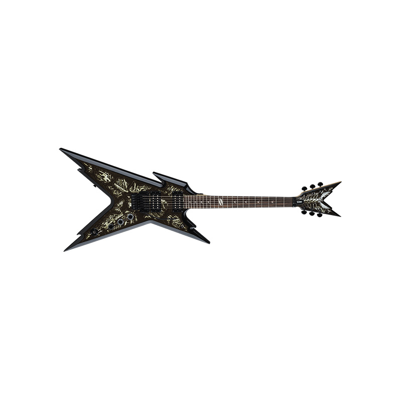The Dean Razorback DB Electric Guitar boasts a killer jagged Dimebag designed basswood body decked out in outrageous Biomechanical graphics. The Razorback DB guitar’s maple neck is topped with a rosewood fretboard with a pearl razor inlay at the 12th fret that evokes Dime’s famous necklace. This Razorback DB edition is finished off with black hardware, Grover tuners, and a Floyd Rose Special tremolo bridge that ensures outstanding string pyrotechnics. Dean includes a lightweight case with the Biomechanical Razorback DB guitar.