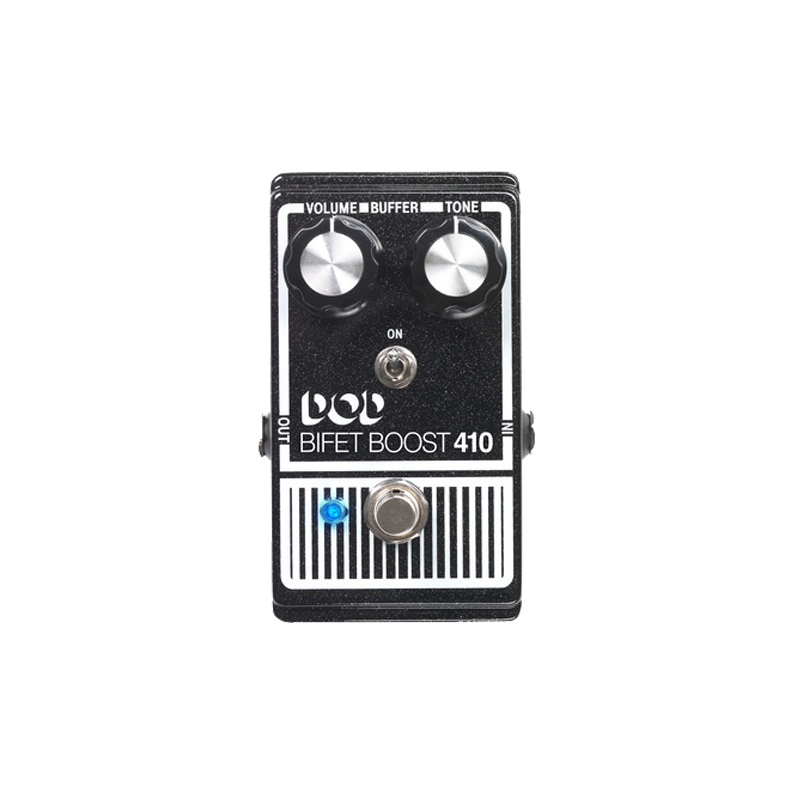 Sparkly or darkly, the DOD Bifet Boost 410 (2014) has the tone and volume to boost your solos into orbit. New for the DOD Bifet Boost 410 (2014), is a selectable Buffer On/Off toggle switch. This switch affects the bypass state of the undefined Bifet Boost and gives it the flexibility to be used anywhere in your FX chain. Use it first in the chain with the buffer off so that the buffer won?t affect fuzz pedals, or put it last in the chain with the buffer on to counter the signal loss of today?s larger packed pedalboards.