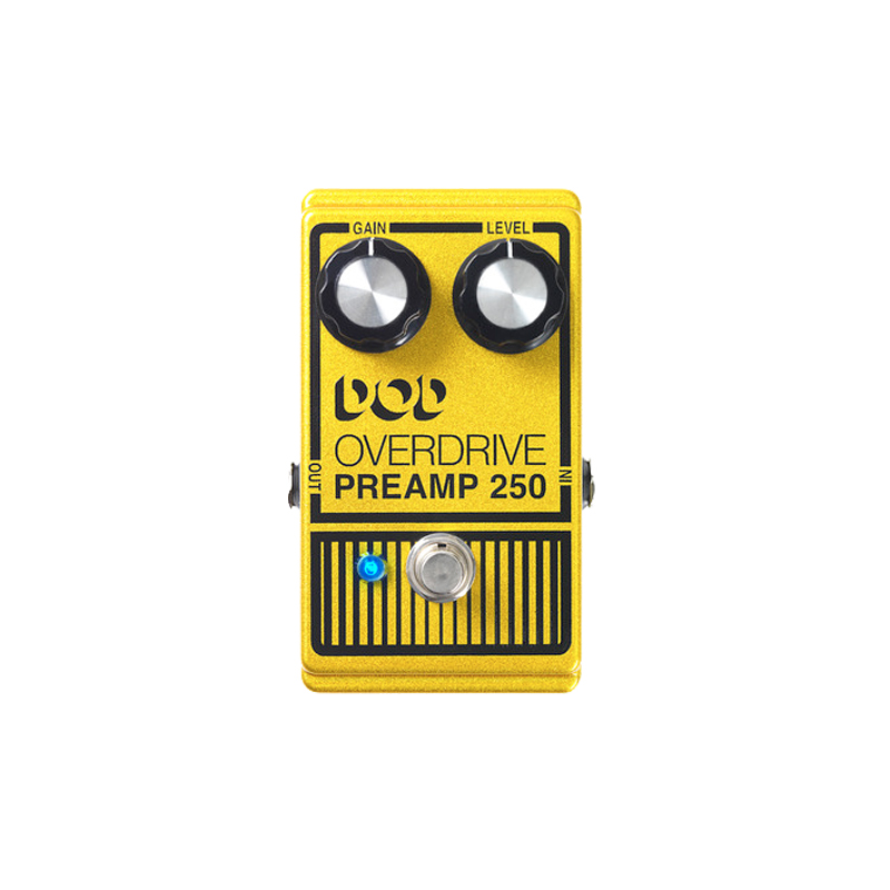 The legendary analog DOD Overdrive Preamp 250 is back, with over 40 years of history and experience behind it. The new 2013 version of the legendary DOD 250 captures all of the classic tone and wild heart of the original but in no way tames its performance. The 250 is better than ever before with true bypass, a crisp blue LED indicator, gobs of output, and modern 9V DC power supply input.? Redesigned with a lighter aluminum chassis, sleek yellow metallic flake and flat black matte bottom paint job, the undefined DOD Overdrive Preamp 250 pedal is the perfect sonic foundation to carry on the legacy of DOD.