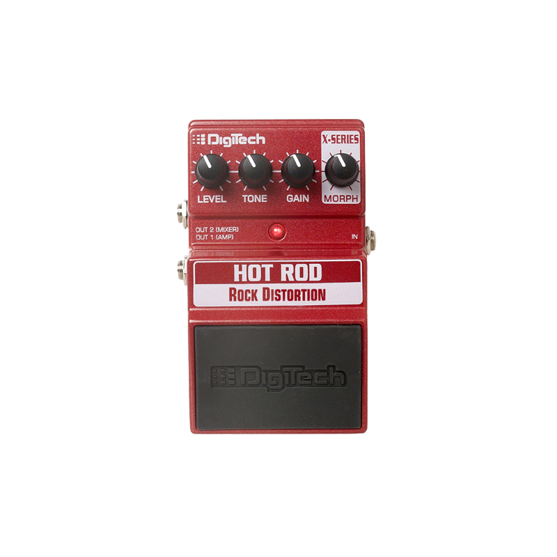 What’s better than one cool distortion pedal? How about three?! DigiTech introduces the X-Series Hot Rod Rock Distortion pedal. We give you three distinct distortion sounds. From a smooth, warm tone, to classic, edgy “British Stack” tone, to a high gain fuzz distortion. What’s even better than that? How about adding a morph knob that allows you to morph a unique tone between these distortions?!? This gives you a near unlimited supply of combinations to choose from all in one pedal.?As you have come to expect from DigiTech’s excellence in craftsmanship, this pedal is made of a rugged durable metal with features unique to DigiTech like our innovative spectral-contouring EQ that delivers an impressively greater tonal range than other distortion stomp boxes.? You will also find our dual output system especially handy whether going direct to your amp or utilizing the mixer out direct to a mixing console using our cabinet modeling circuit.