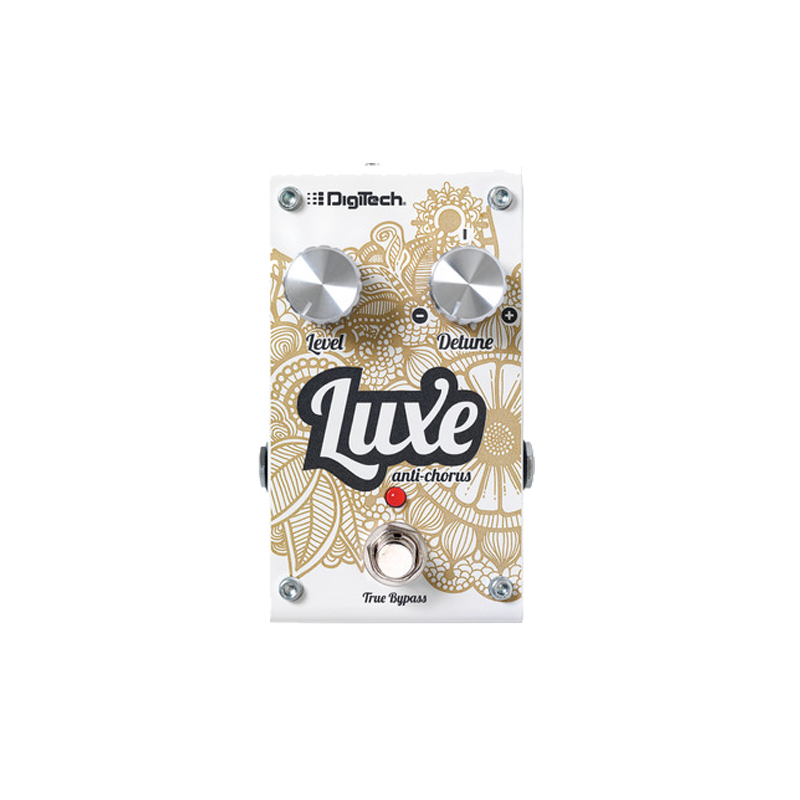 The DigiTech? Luxe is an anti-chorus, DigiTech’s first stand-alone, compact, polyphonic detune pedal.?The Luxe takes the detune effect from the popular Whammy? product line and adds positive and negative detune capabilities. The Luxe detune will add consistent ?thickening? to your signal without the modulating side effects introduced by a chorus effect. Whether you?re playing single notes or chords, the Luxe provides a lush, solid, and true pitch-detuning effect. Clean guitar chords shimmer. Distorted guitar harmonics are richly enhanced. The Luxe simply makes everything sound better.