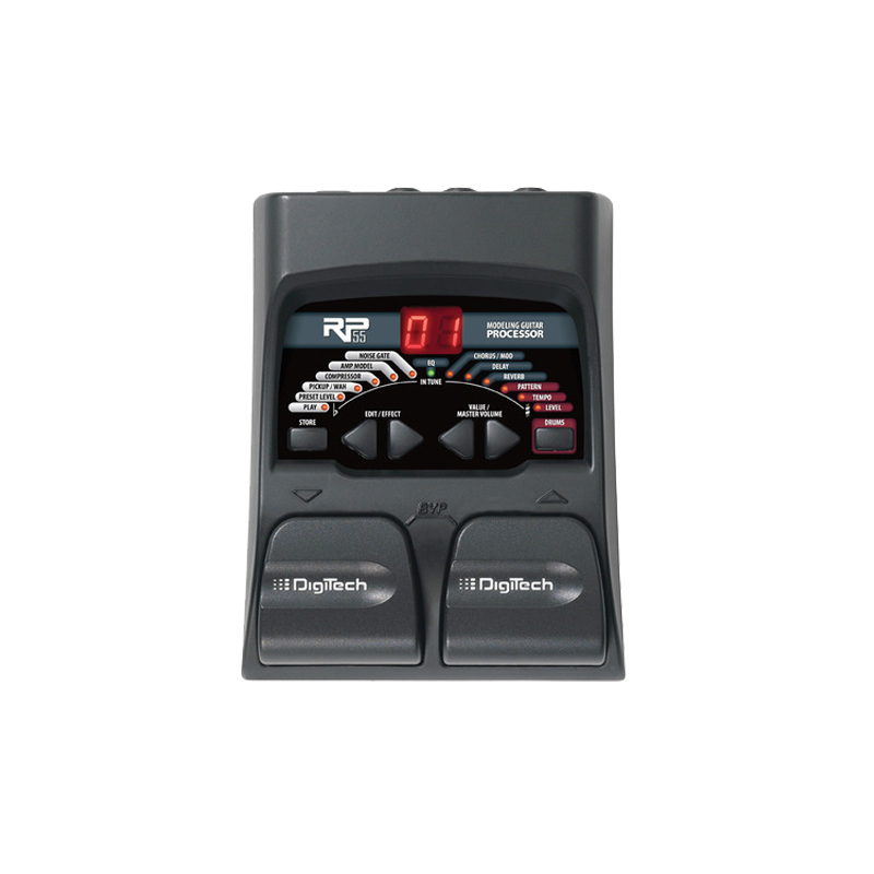 Equipped with 11 Amp Models and 20 Studio Quality Effects, up to 8 effects can be used at once for unimagined tonal possibilities.? The RP55 is the easiest RP product to use; just simply dial up your choice of amps and preset effects settings with no deep parameter settings. All settings come from our year’s of experience with the pros. We’ve just made professional tone easy.The RP55 uses our AudioDNA? DSP chip to produce effects and amps that studio-class. Add 24-bit A/D/A conversion so that no frequency response is lost between inputs and outputs. Also included is a drum machine with 30 patterns and an easy-to-use 13-LED chromatic tuner.