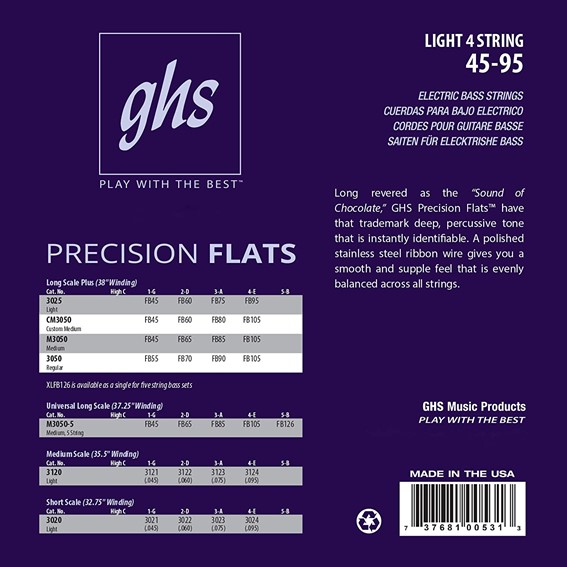 GHS Bass Stainless Steel Precision Flatwound – Light (3025 45-95)