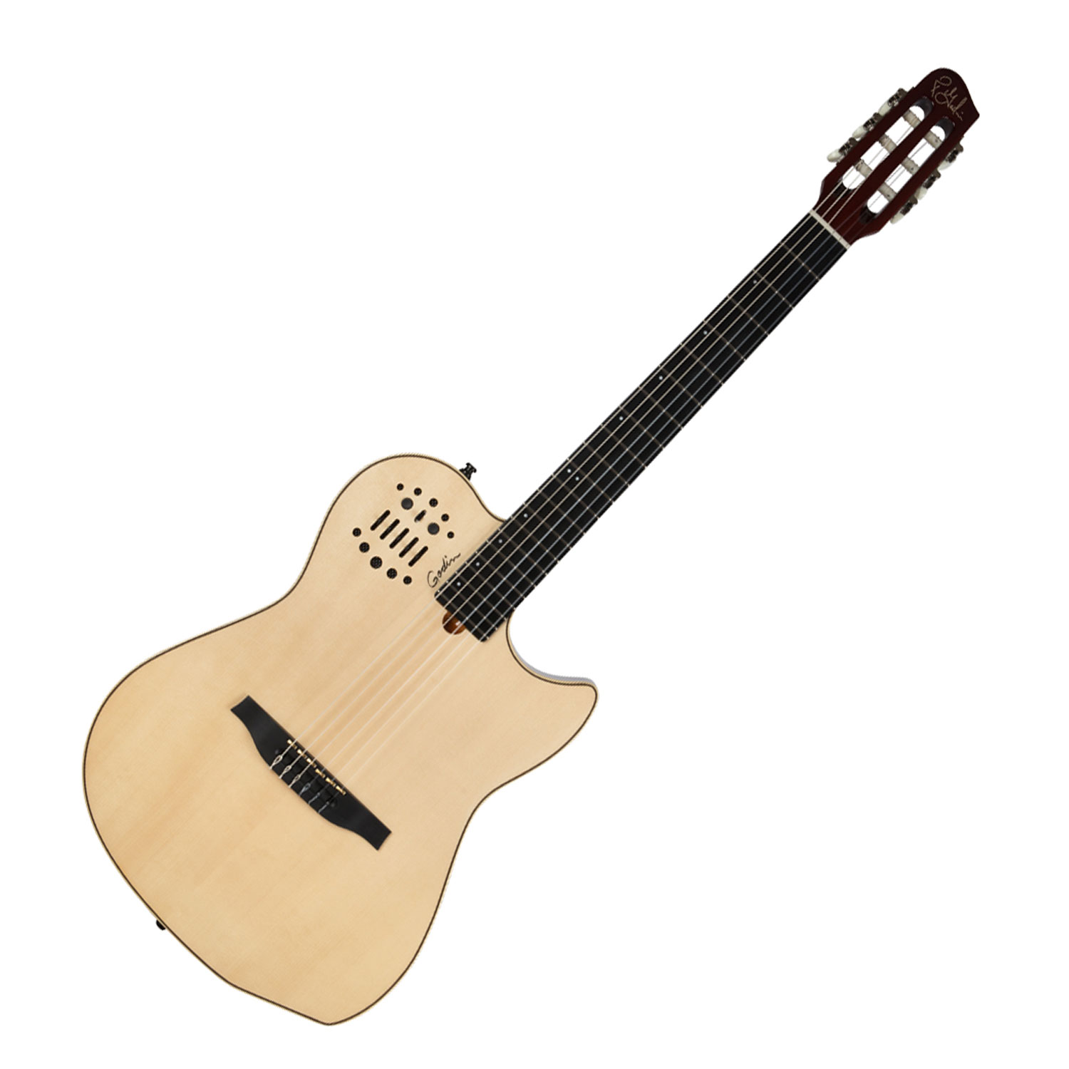 The original Multiac Nylon SA combines cutting edge acoustic guitar design with state-of-the-art on-board electronics and synth access. The 25½” scale, the 1 7/8″ nut width, and the fingerboard radius—a slight 16″—all contribute to an easy adaptation and feel for steel-string players. This has become the instrument of choice for guitarists of all genres looking to incorporate nylon-string guitar sounds into their music.