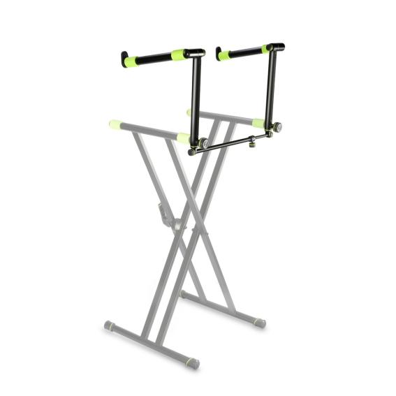 Tilting tier for Gravity X-type keyboard stands. Upgrade your keyboard stand by attaching a second tier for an additional keyboard. The universal and easy to use mounting and adjustment options require no tools whatsoever. The tilting angle of the tier is adjustable in fine incremental steps ? markings on both arms help in finding the right angle. The tier is compatible with tubes measuring an inner diameter of at least 20 mm.