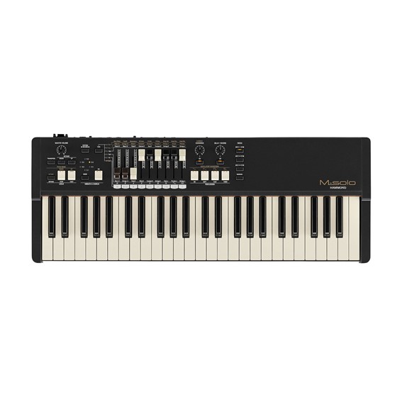 The M-solo features a 49-key velocity-sensitive lightweight keyboard that provides a real-deal B-3 playing feel. User-programmable Patch Memory buttons are convenient, so your favorite patches are available immediately onstage. A variety of digital effects are available to add excitement to your sound. A great companion for the M-solo is the separately available versatile and soft Gig Bag, which may be carried by hand or worn like a backpack.