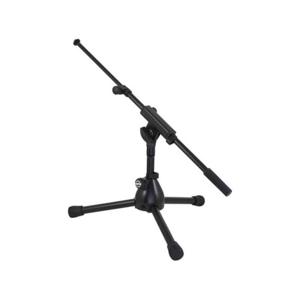 Extra low design for bass drums or special use. Very short and heavy legs provide maximum stability. Legs are foldable for easy transport. Comes with two-piece boom arm.