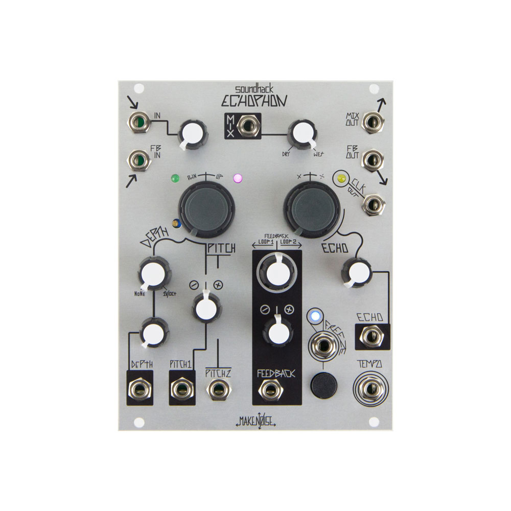 The Echophon music synthesizer module is a Pitch Shifting Echo with smooth Time Modulation, Tempo Sync, saturating Feedback and a unique Pitch Shifting algorithm inspired by the Springer Tempophon and lovingly engineered by DSP Guru Tom Erbe of soundhack . “…the most inspiring module of the year.” -Electronic Musician.