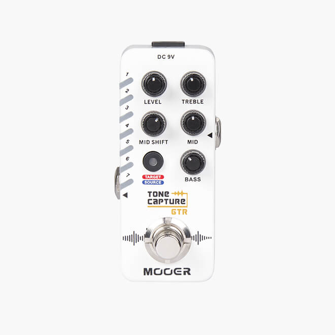 The TONE CAPTURE Guitar pedal is based on MOOER’s unique EQ matching technology, TONE CAPTURE. This pedal allow you to capture any guitar’s tone by sampling the unique tonal characteristics of the target guitar. The days of lugging around multiple guitars are over. The Tone Capture Guitar pedal opens up a variety of guitar sounds without the need to carry several guitars. Need 8 bars of acoustic? Don’t want to take your vintage strat to the gig? You can sample the unique tonal qualities of any of your guitars at home and carry them around with you in the compact TONE CAPTURE GTR pedal!
