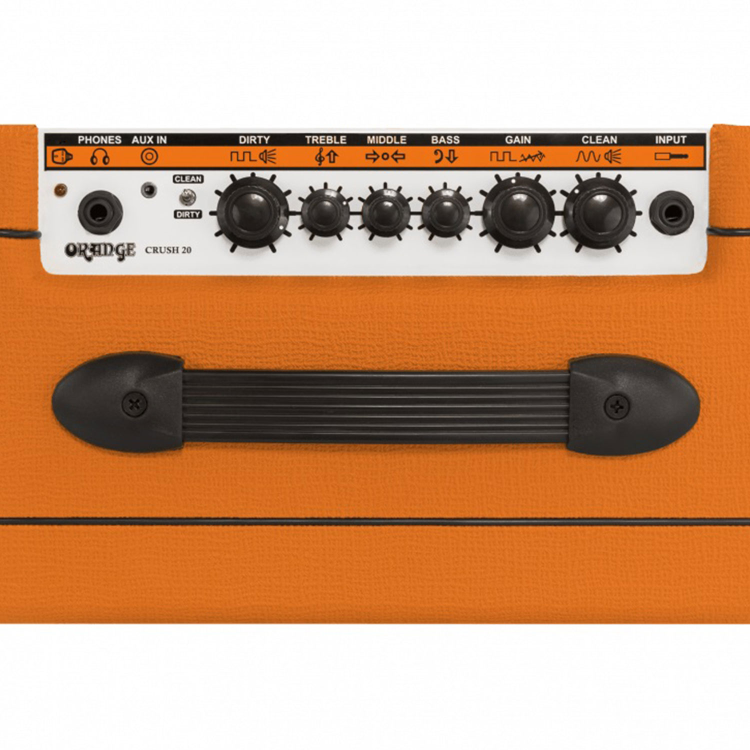 New for 2015 the twin channel Crush 20 takes an uncompromising approach to guitar tone and puts it in a compact and portable package. With footswitchable Clean and Dirty channels our new high gain, four stage preamp design serves up a huge palette of overdriven and distorted sounds, rich in harmonic overtones.