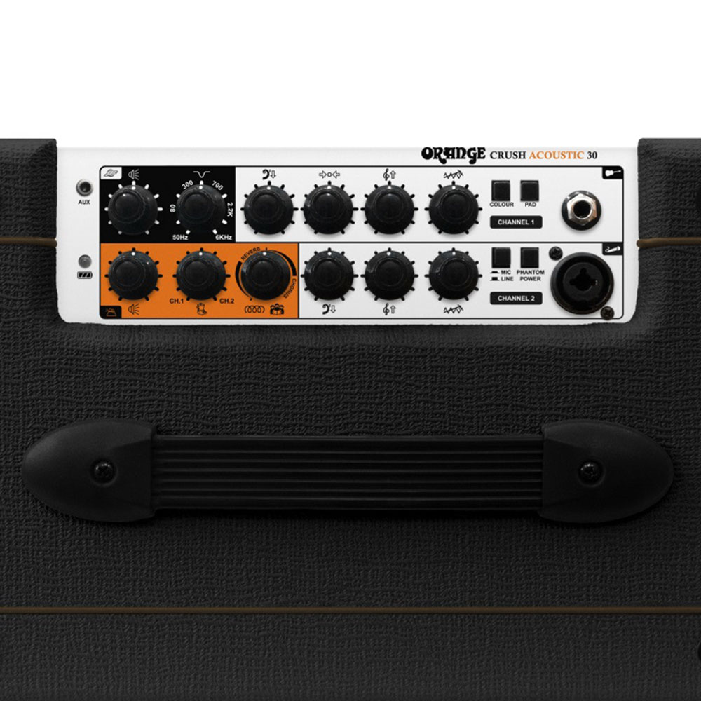 With over 50 years of experience in great guitar tone and quality, the Crush Acoustic 30 is Orange’s second entry into the world of Acoustic Amplification. At ease in any situation: the lightweight, portable, battery powered acoustic combo continues the Orange traditions of simple but versatile design.