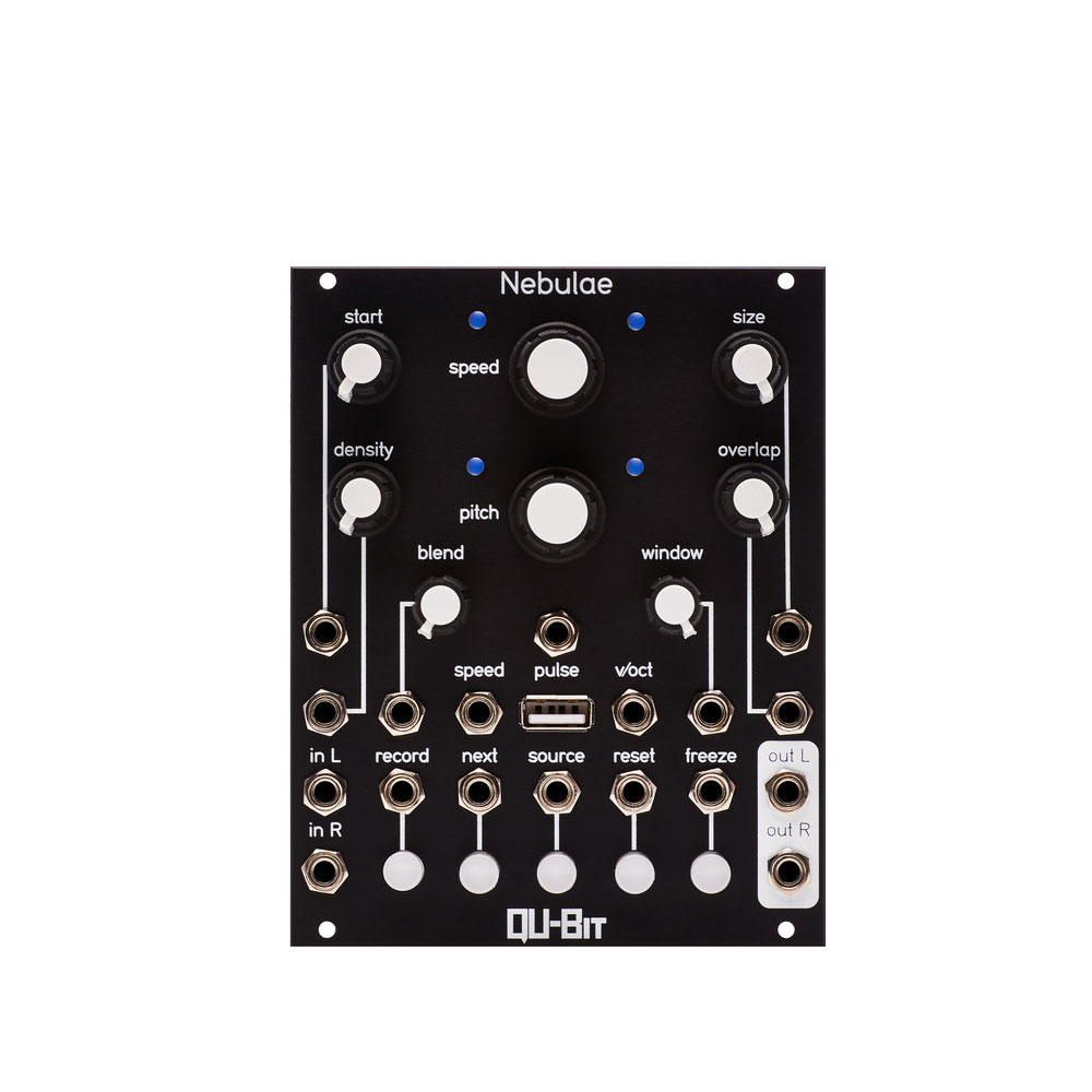 Nebulae is a granular sampler and DSP platform. Its phase vocoder audio engine provides elastic audio, which can be time stretched, granularized, and mangled to no end. With independent control over pitch and speed, and granular controls such as overlap, window, and density, finding new sonic territory is only a knob turn away. Nebulae can use live audio input, a recorded buffer, or audio files as the source material for its powerful audio manipulations. The live input buffer can record up to five minutes of stereo audio at 48kHz, 24 bit. In addition, up to 75 MB of stereo audio can be loaded simultaneously through the USB port. No naming convention or special formatting necessary; just plug and play.