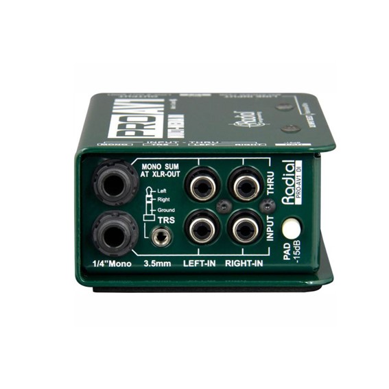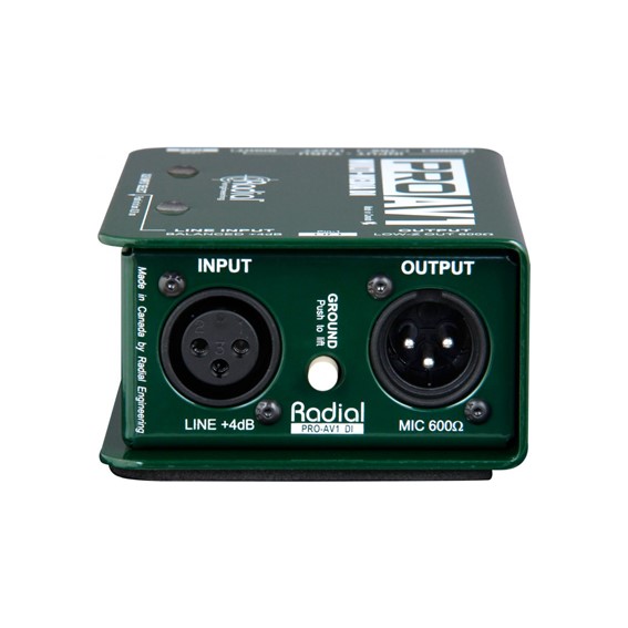 The Radial ProAV1 is a passive direct box specifically developed with the audio-video integrator in mind. The ProAV1 features a variety of stereo inputs that are merged via a resistive mixer to mono, greatly simplifying signal management.