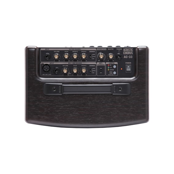 Rich, deep, stereo sound to go — introducing the AC-33, the world’s first battery-powered amp made specifically for acoustic guitar. Portable yet powerful, the AC-33 provides true stereo sound, Guitar and Mic/Line channels, custom-tailored effects, anti-feedback, and a Phrase Looper. But this amp was made to go places no amp has gone before. Thanks to its battery-power capability, the AC-33 lets you take your act anywhere: into the backwoods, onto the streets, or wherever your imagination leads you.