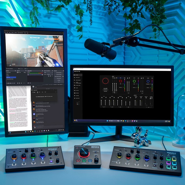 Level up your gaming and streaming sound with BRIDGE CAST ONE, a compact livestreaming audio mixer with hands-on controls. Gain a competitive advantage with powerful features like dual bus mixes, vocal transformer effects, fast-access presets, and support for a broadcast-grade mic and headphones. For even more control, the companion BRIDGE CAST app offers extended audio tools and royalty-free background music and sound effects through BGM CAST on Roland Cloud.