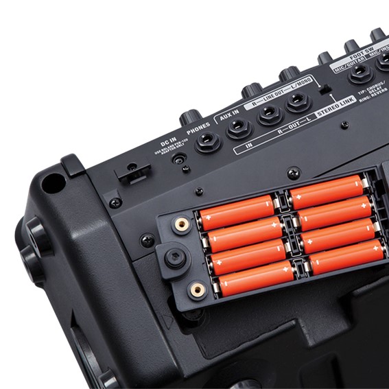 - Innovative new Roland technology provides 50 watts of stereo power from eight AA-size batteries