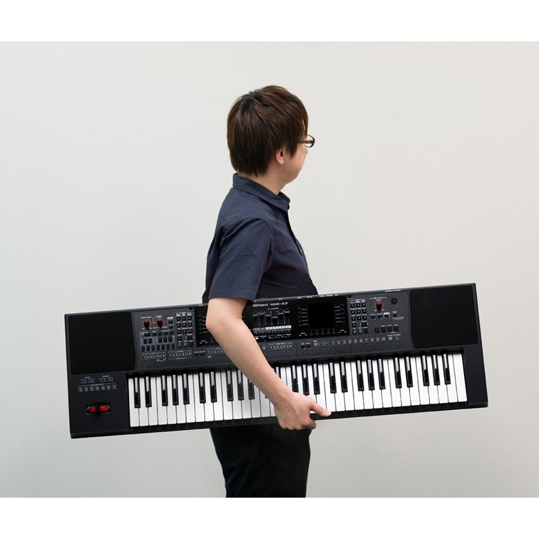 The E-A7 is a versatile arranger keyboard for musicians needing professional sounds and authentic backing styles from all over the world. Using the E-A7 is fast and intuitive thanks to its logical dual-screen layout—styles on the left and sounds on the right, with most options having dedicated, quick-access buttons. You can import WAV files to create your own instruments, or even sample directly from the keyboard. And with the powerful E-A7 Tone Manager software, you can use your computer to edit and organize user tones and drum kits, work with samples, and more. Singers will appreciate the microphone input with dedicated vocal effects, while the whole keyboard is easy to gig with, weighing in at just 8 kg/18 lbs. Wherever you’re going with your music, the E-A7 will help you get there.