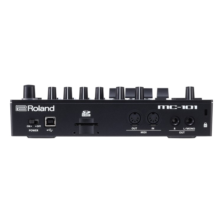 The MC-101 is a professional production tool, sharing the sounds and many of the capabilities of its bigger sibling, the MC-707. And there are advantages to being small. The MC-101 is solid-yet-light and runs for about five hours on four AA batteries, so you can design sounds, create drum patterns, and compose musical phrases just about anywhere. And it’s not just a scratch pad for simple ideas. You can produce fully fledged professional tracks or create backing tracks and accompaniment for live performance.