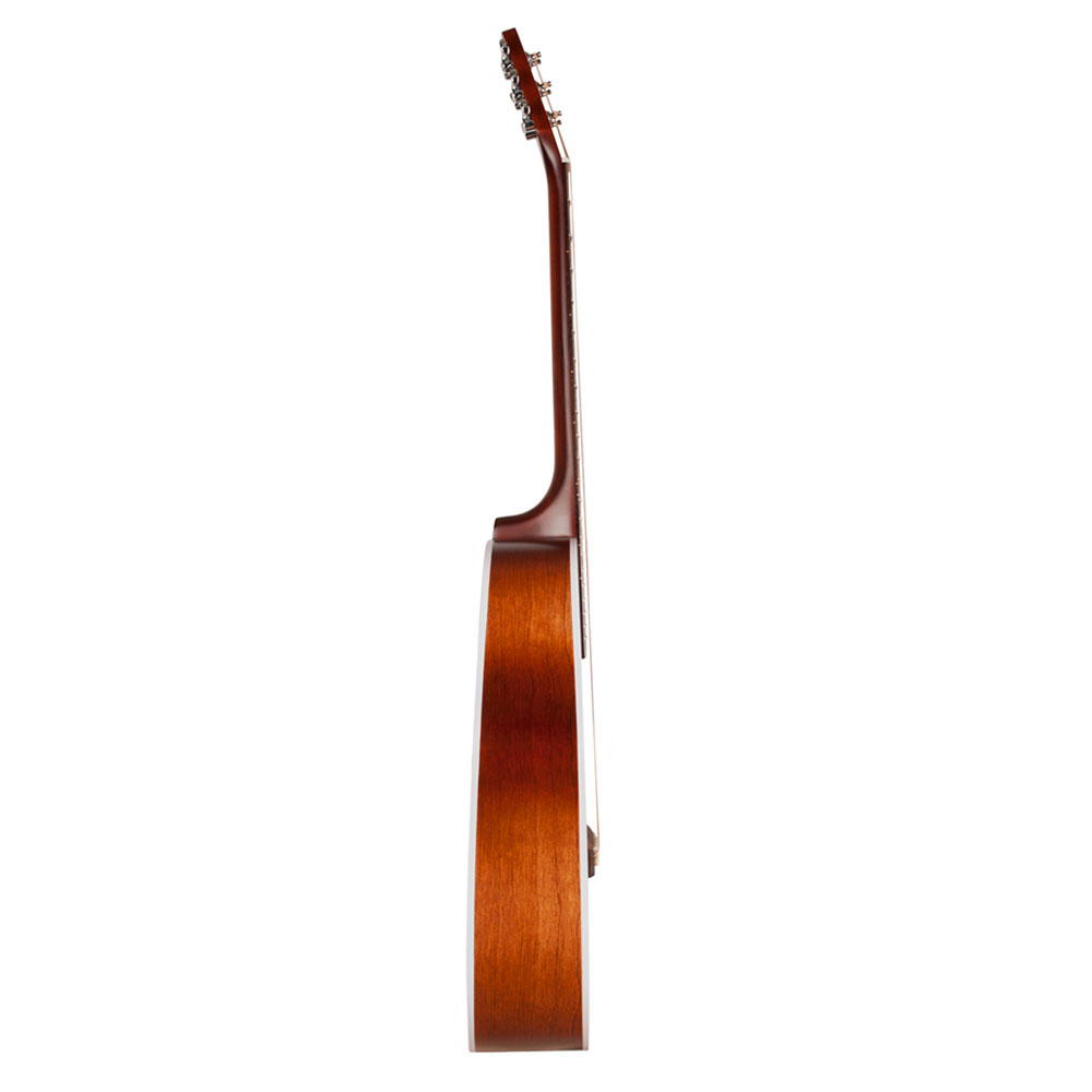 The new Entourage Grand Natural A/E is a beautifully revamped version of its predecessor, the Entourage Rustic Grand QIT. It presents exciting new features, such as an eye-catching white binding with a thin inner black contour to bring out the naturally finished top, a redesigned pickguard, and a richer/shaded finish on the back and sides. The compact parlor shape is easy to play, but do not let its size fool you—it can really roar thanks to its loud projection and tight bottom end! It also comes equipped with the Fishman Sonitone system, featuring a soundhole-mounted preamp with rotary Volume and Tone controls. The Entourage Grand Natural A/E also makes for the perfect travelling companion wherever you go.