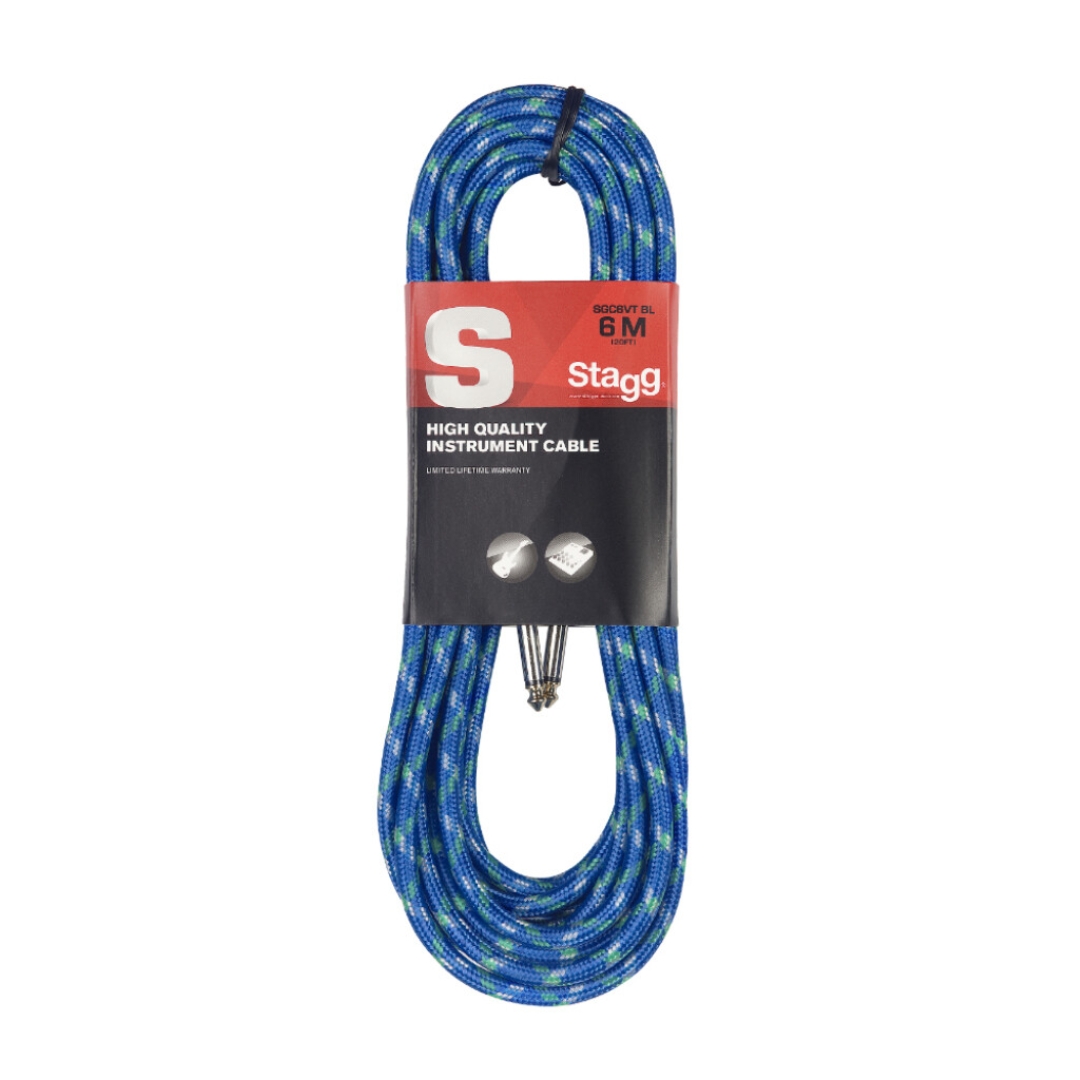 Stagg Cable SGC6VT-BL Vintage Tweed Instrument Cable 6M/20FT – Blue
