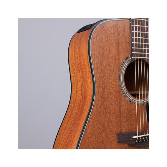 This cool all-sapele Cutaway Dreadnought sized Takamine is great for acoustic blues, bold strumming, or roots music. The low gloss natural satin finish adds a great old-school vibe to the instrument. Like all Takamine guitars, the transition to the stage is made effortless with the addition of Takamine’s own TP-4T electronics, complete with an equalizer and chromatic tuner built-in.