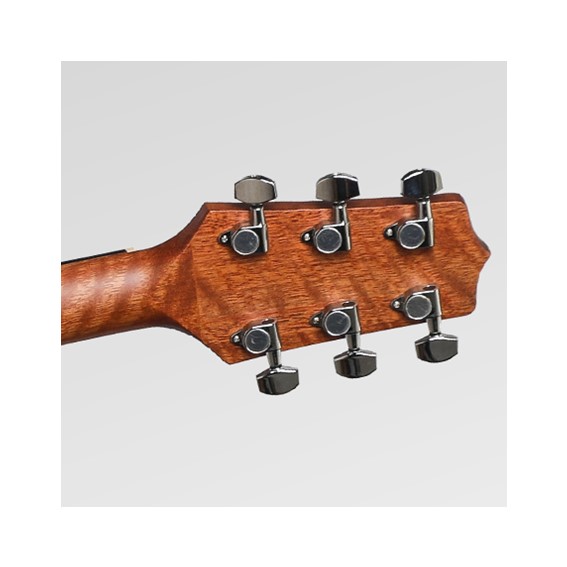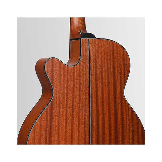 This all-sapele Cutaway NEX sized Takamine is great for acoustic blues, fingerstyle, or roots music. The low gloss natural satin finish adds a great old-school vibe to the instrument. Like all Takamine guitars, the transition to the stage is made effortless with the addition of Takamine’s own TP-4T electronics, complete with an equalizer and chromatic tuner built-in.