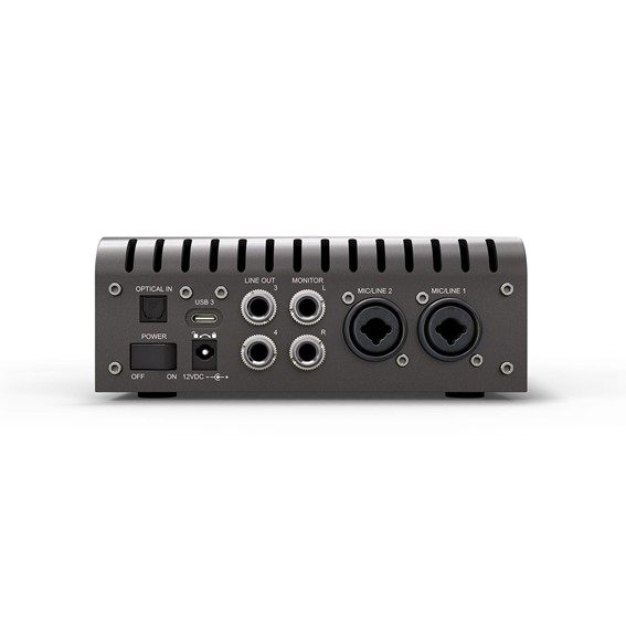 - 2 premium Unison mic/line preamps; 2 line outputs; front-panel Hi-Z instrument input and headphone output