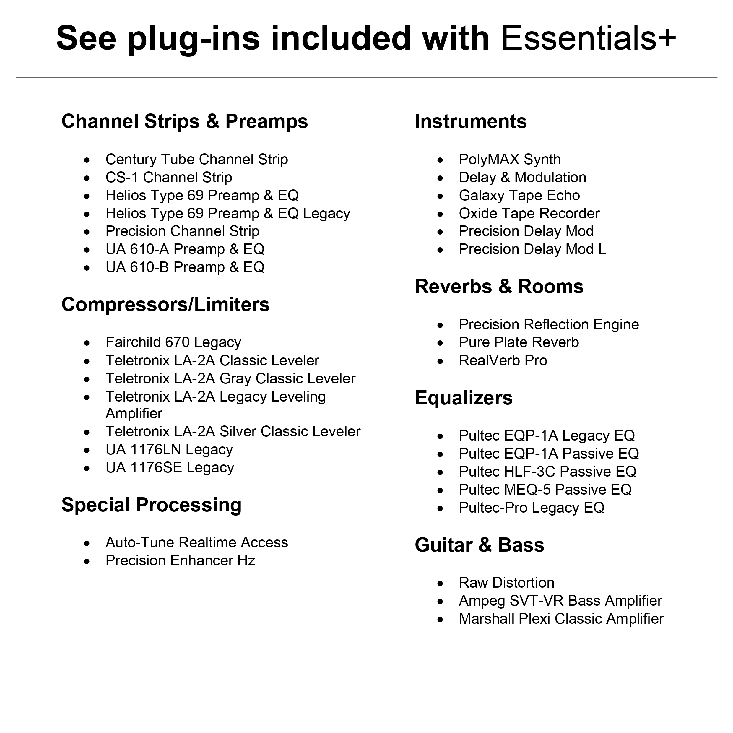 • Choose between Essentials+ and Ultimate+ editions, adding up to 100+ UAD plug-ins worth thousands of dollars