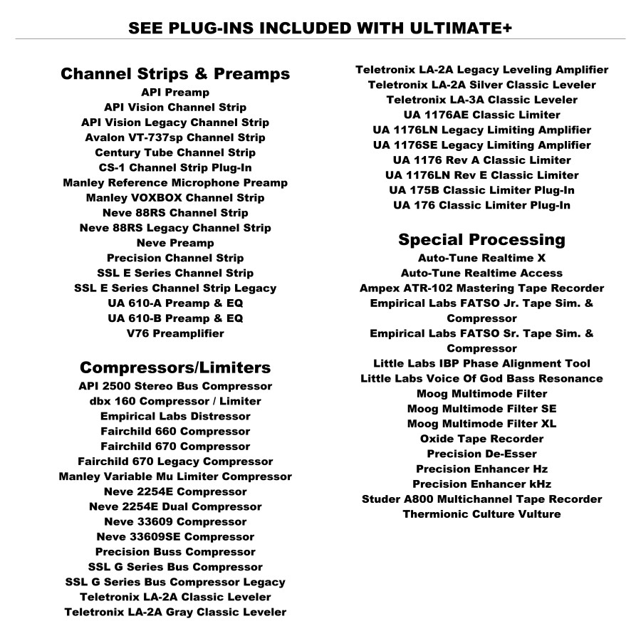 Choose between Essentials+ and Ultimate+ editions, adding up to 100+ UAD plug-ins worth thousands of dollars