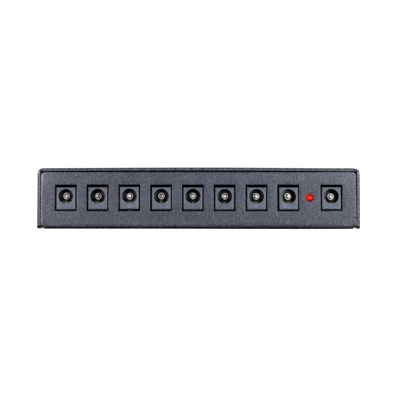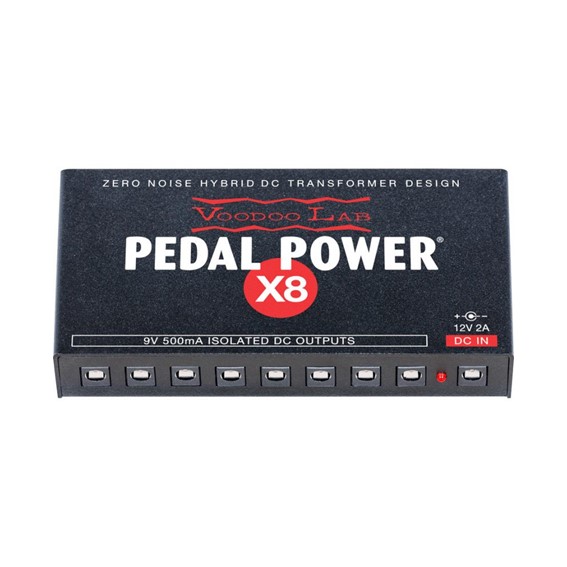 Equipped with eight galvanically isolated 9V DC outputs, Pedal Power X8 eliminates ground hum and unwanted interaction between pedals. Power 18V pedals by combining outputs with an optional voltage doubler cable or adapter.