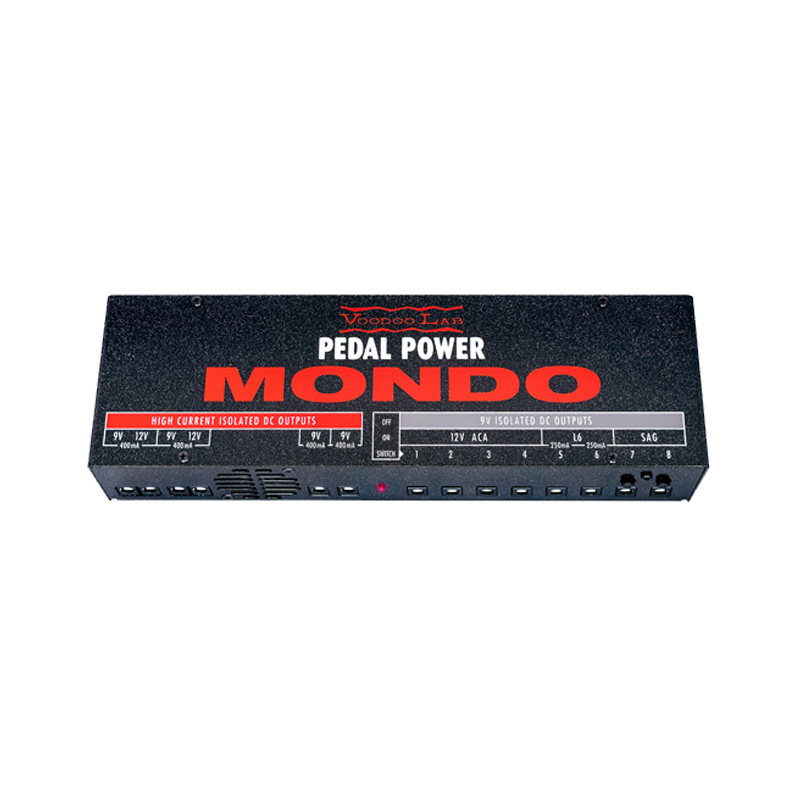 Pedal Power® MONDO is a high-current capable power supply that can power the largest and most diverse pedalboards. From digital power-hungry effects like those from Strymon, Eventide, Line 6, TC Electronic and more, plus compatibility with all standard 9-volt battery stompboxes, MONDO is perfect for large to gigantic pedalboards. Features 12 completely isolated, filtered, and regulated output sections that will keep your pedals dead quiet and free from high-frequency noise that occurs with digital “switching” power supplies.